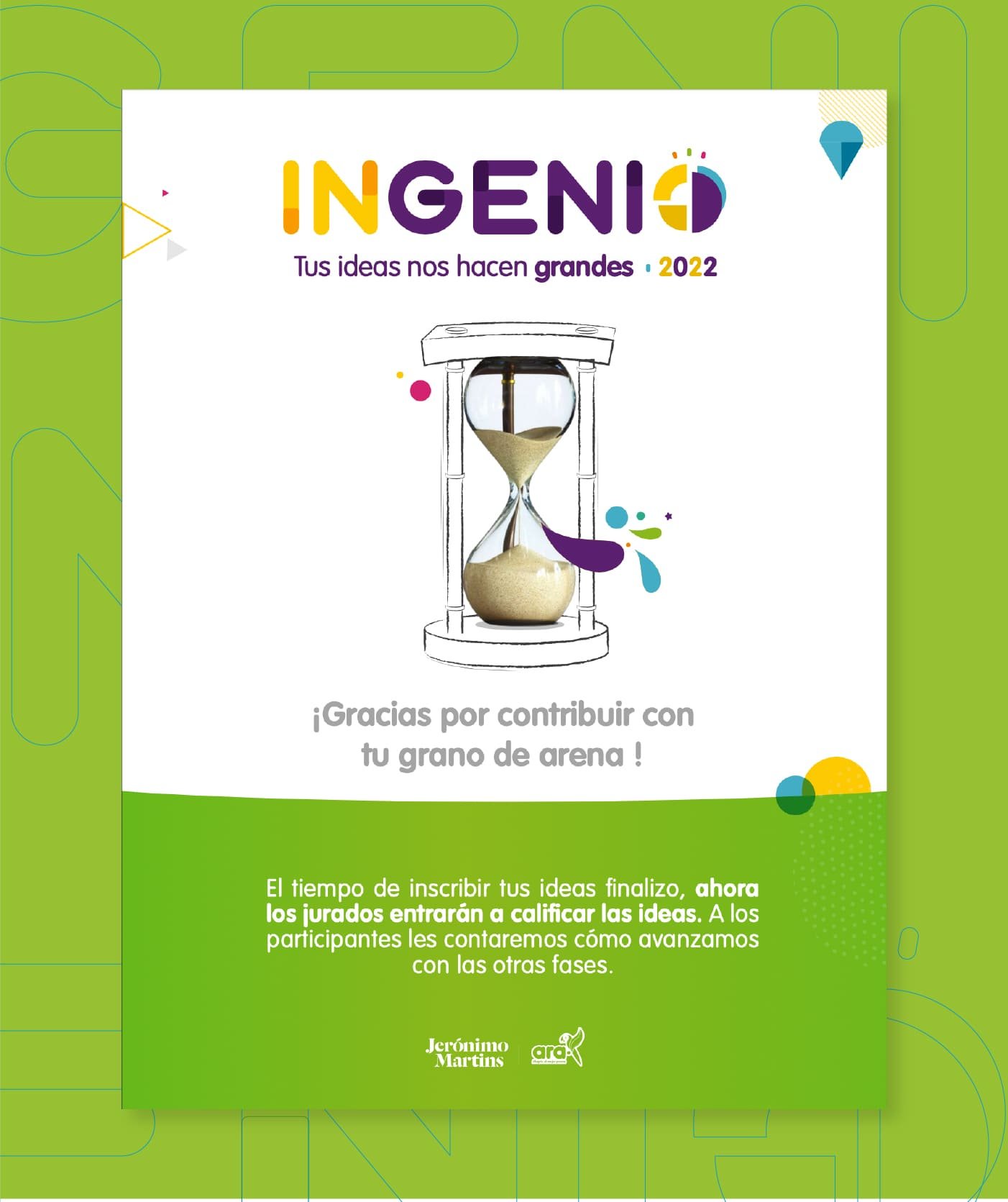 Ingenio" fue una campaña de comunicación corporativa desarrollada por la agencia 36 pt para la cuenta de Jerónimo Martins - Ara, donde desempeñé el rol de diseñadora junior. Durante este proyecto, colaboré en la creación de materiales visuales utilizando el estilo visual establecido por el diseñador senior.
