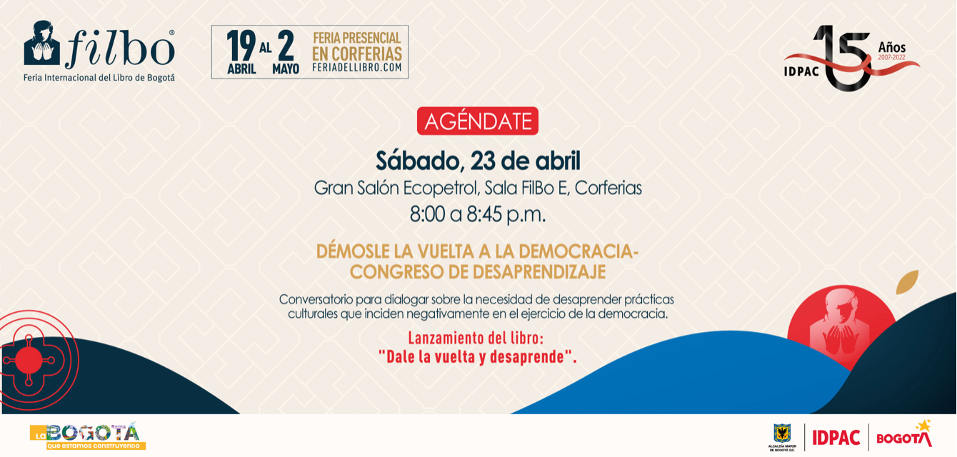 La cita es hoy en el Gran Salón de Ecopetrol, Sala FILBo E, Corferias a las 8:00 p.m. Participe en el conversatorio y lanzamiento del libro: Dale la vuelta y desaprende.